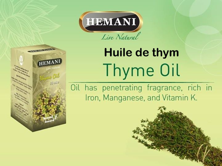 Huile de thym (30 ml). Appréciée par les personnes âgées pour ses propriétés apaisantes pour les articulations, l'huile essentielle de thym est également très efficace contre les problèmes pulmonaires, cystite, infection urinaire...