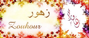 Signification (sens) du prénom Zuhûr (Zouhour) زُهُور: Pluriel de zahra (زَهْرَة), qui désigne la fleur.