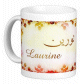 Mug avec le prénom "Noè" écrit en français, en arabe (نوي) et calligraphié de façon artistique en arabe sur la partie droite.