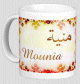 Mug avec le prénom "Karl" écrit en français, en arabe (كارل) et calligraphié de façon artistique en arabe sur la partie droite.
