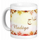 Mug avec le prénom "Alexandra" écrit en français, en arabe (ألكسندرا) et calligraphié de façon artistique en arabe sur la partie droite.