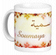 Mug avec le prénom "Théodore" écrit en français, en arabe (تيودور) et calligraphié de façon artistique en arabe sur la partie droite.