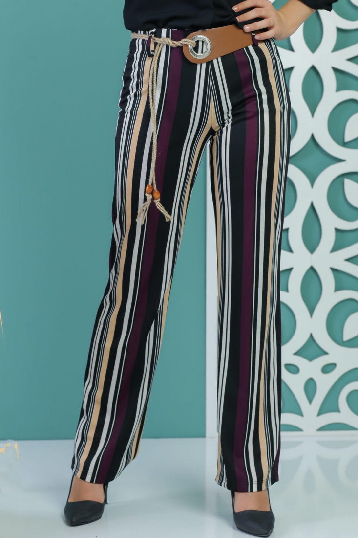 Ce pantalon rayé ultra moderne qui sort de l'ordinaire avec sa matière confortable et fluide se portera aussi bien à la maison qu'à l’extérieur. Les différentes couleurs qui le composent vous permettront de l'assortir sans problème.