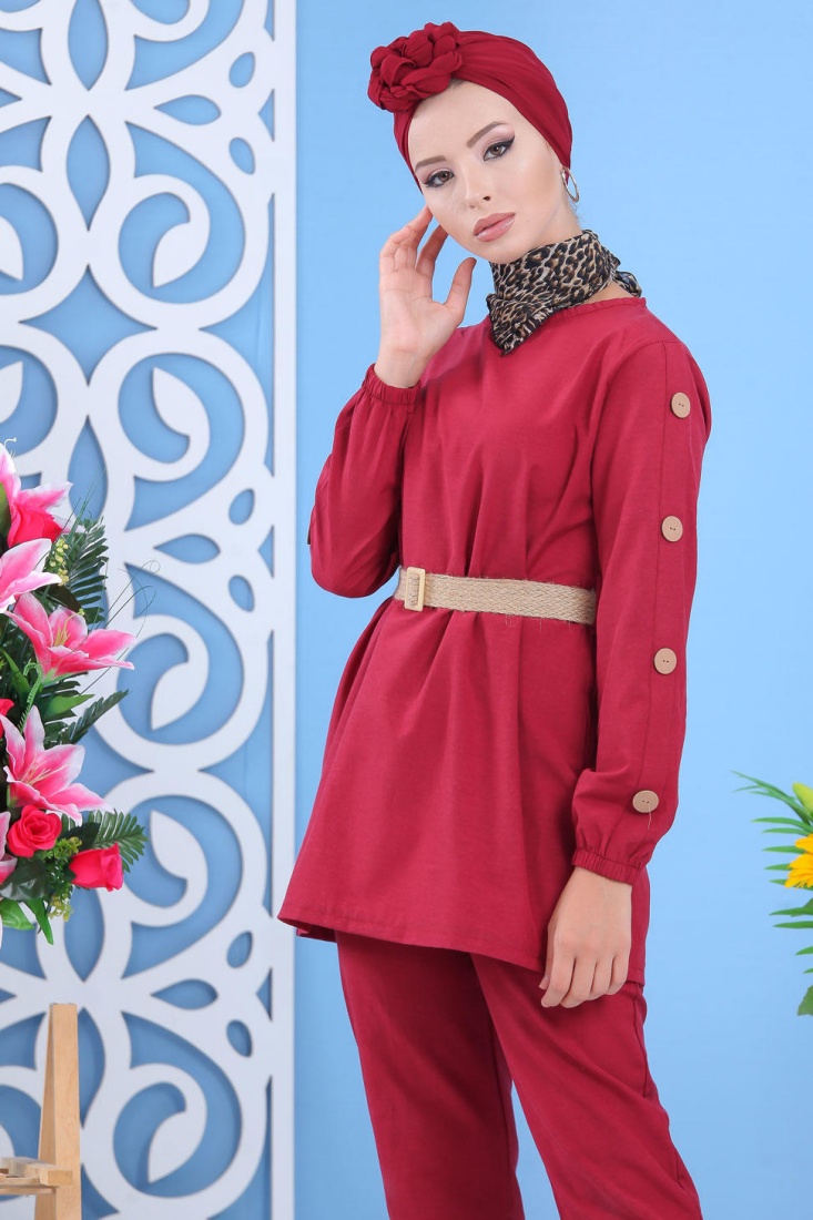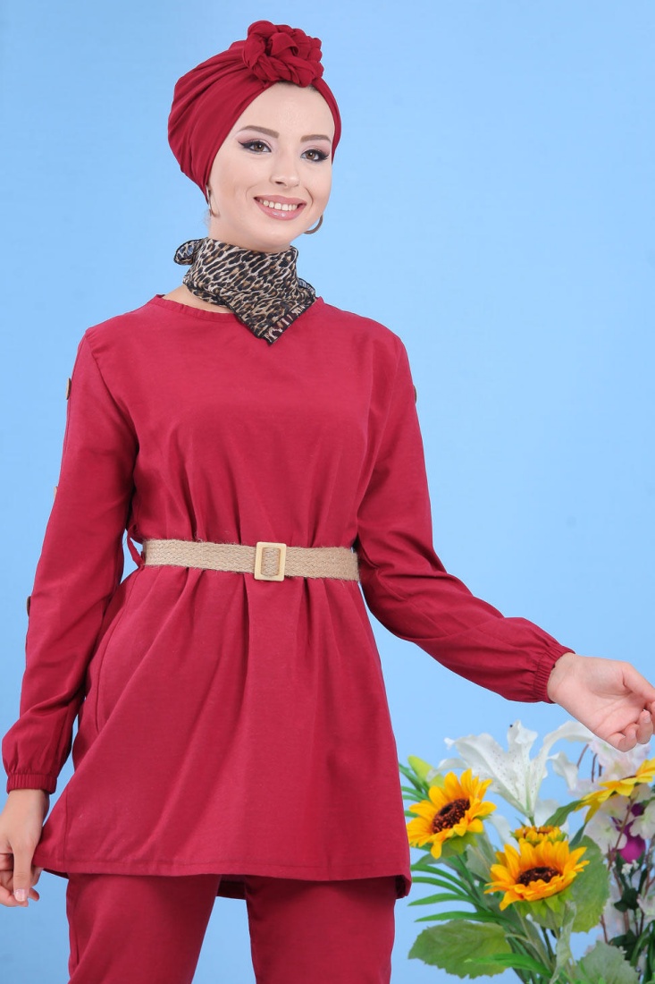 Ensemble tunique, col arrondi, ceinture tissée à passants, manches longues, décoration boutons, finition élastiques aux poignets, assorti de son pantalon taille élastique, coupe droite. Ce modèle est une valeur sûre de confort qui vous assurera un look chic au quotidien.