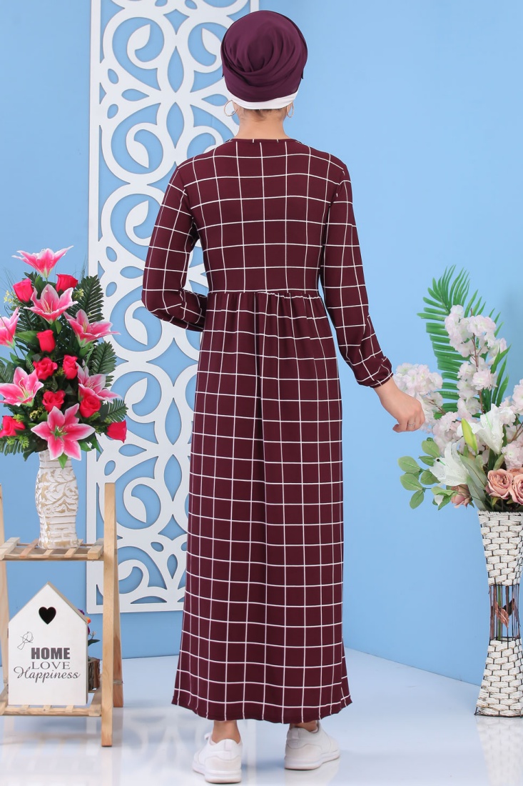 Robe longue, col rond, manches finition élastiques aux poignets, taille froncée élastique, tissu fluide, effet crêpe. Vous aimerez cette robe avec ses imprimés à carreaux indémodables, son coté original et son prix abordable.
