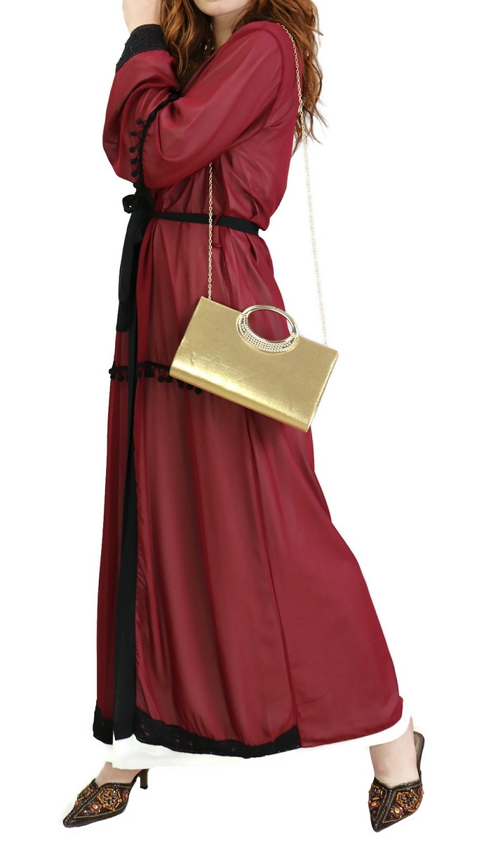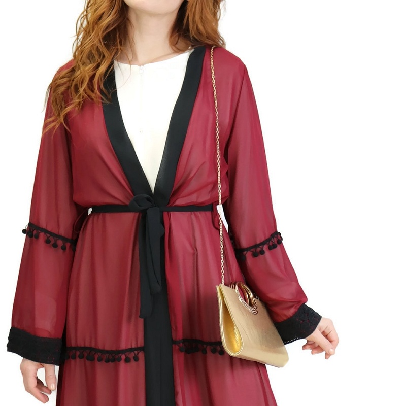 Simple et utile, il se porte ouvert ou fermé et on peut l'ajuster à la taille ou non selon les circonstances. Ses manches sont légèrement évasées, elles sont ornées de pompons qui feront sensation, alors saisissez l'occasion en vous offrant ce beau cardigan.
