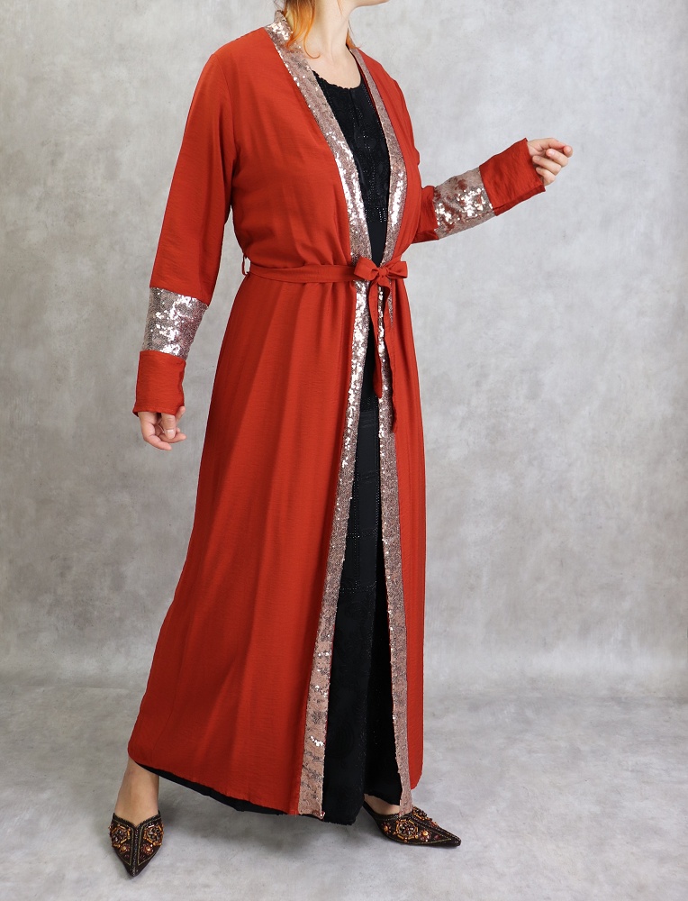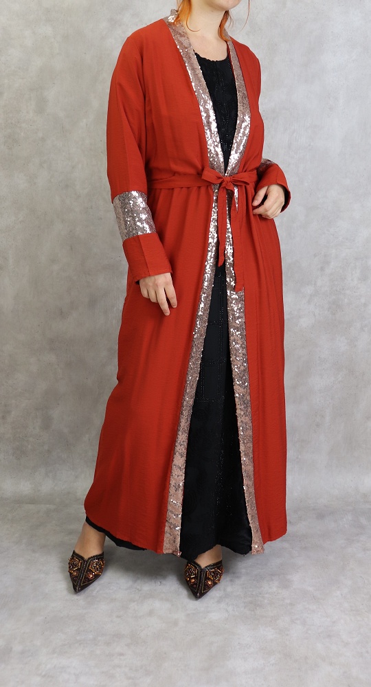 Kimono long, ceinture à passants assortie, matière fluide et agréable, strass sur les mi manches ainsi que sur le pourtour.