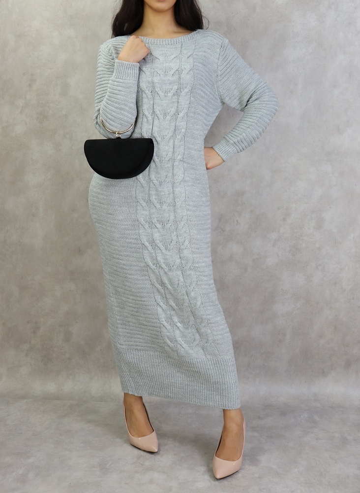Robe longue à maille de couleur gris Vetement & Accessoire