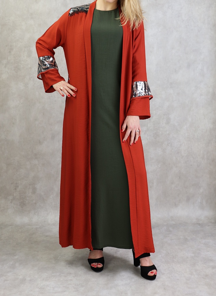 Kimono long à strass - Couleur brique - REF. 31088 (38.00 €)