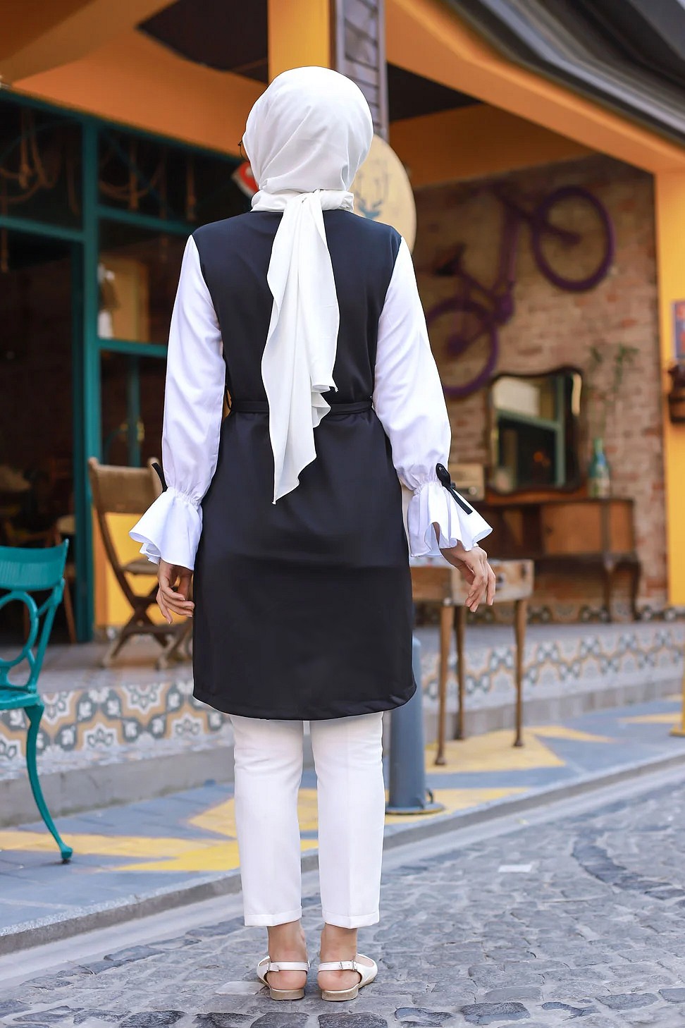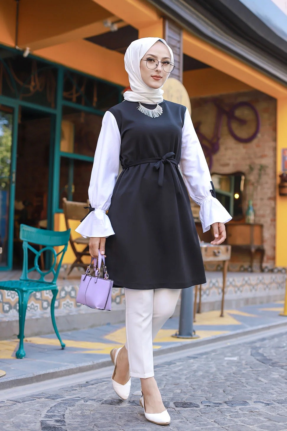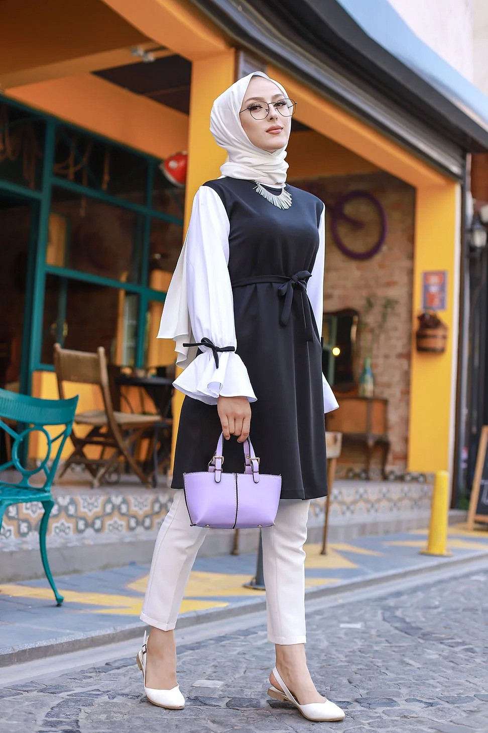 Tunique à volants (Vetement pudique femme voilée) de couleurs noir et blanc Vetement & Accessoire