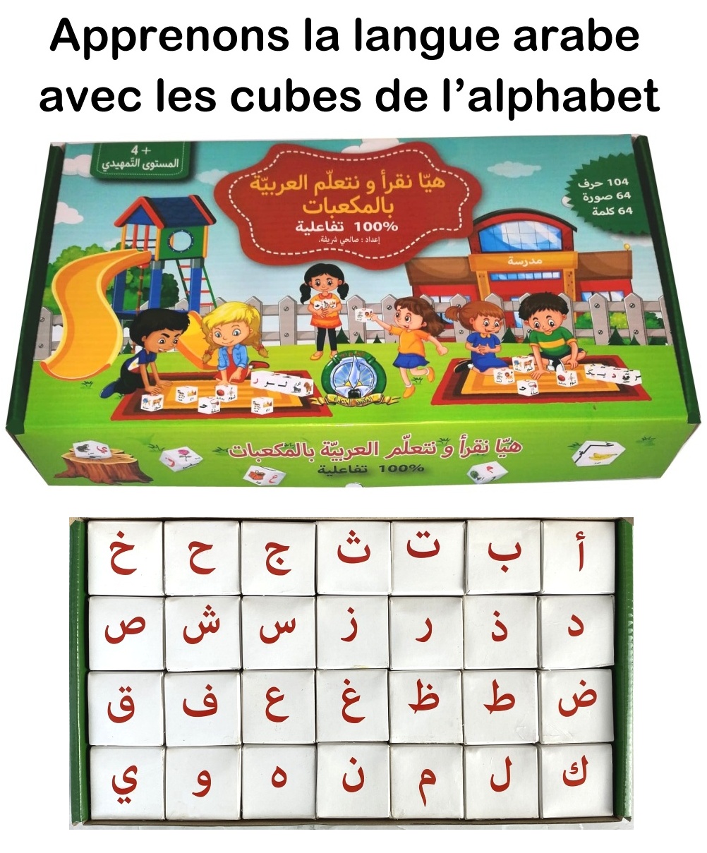 Lisons et apprenons ensemble la langue arabe avec les cubes : une méthode 100% innovante et interactive, qui permet à l’enfant d’apprendre à travers l’essai, le tout avec une manière simplifiée,