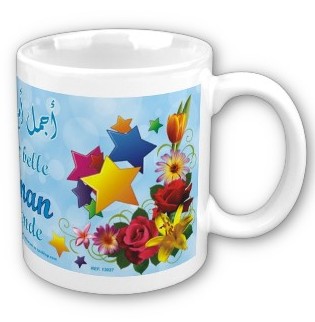 Mug avec l'inscription "La plus belle maman au monde" en français et arabe.