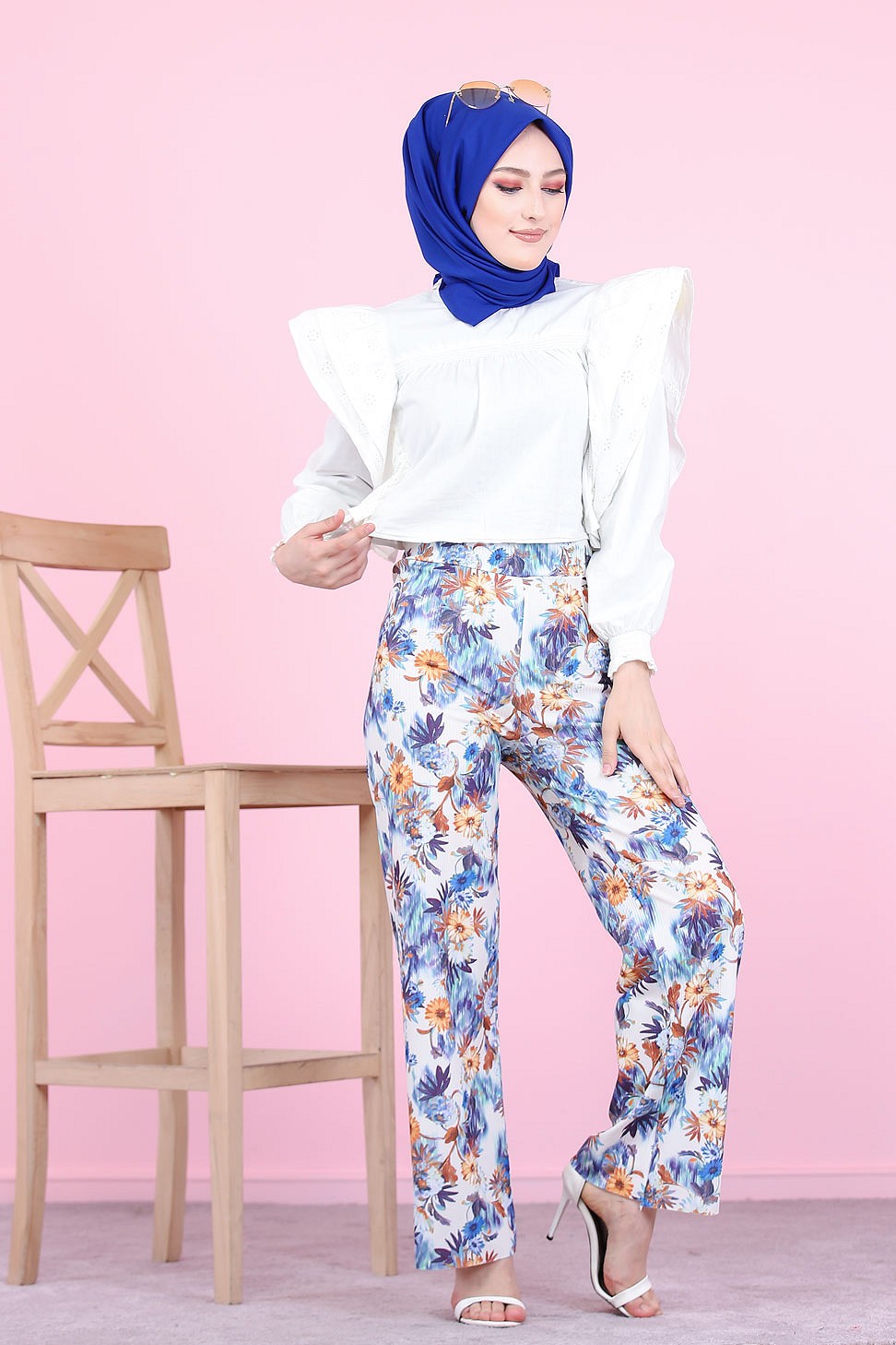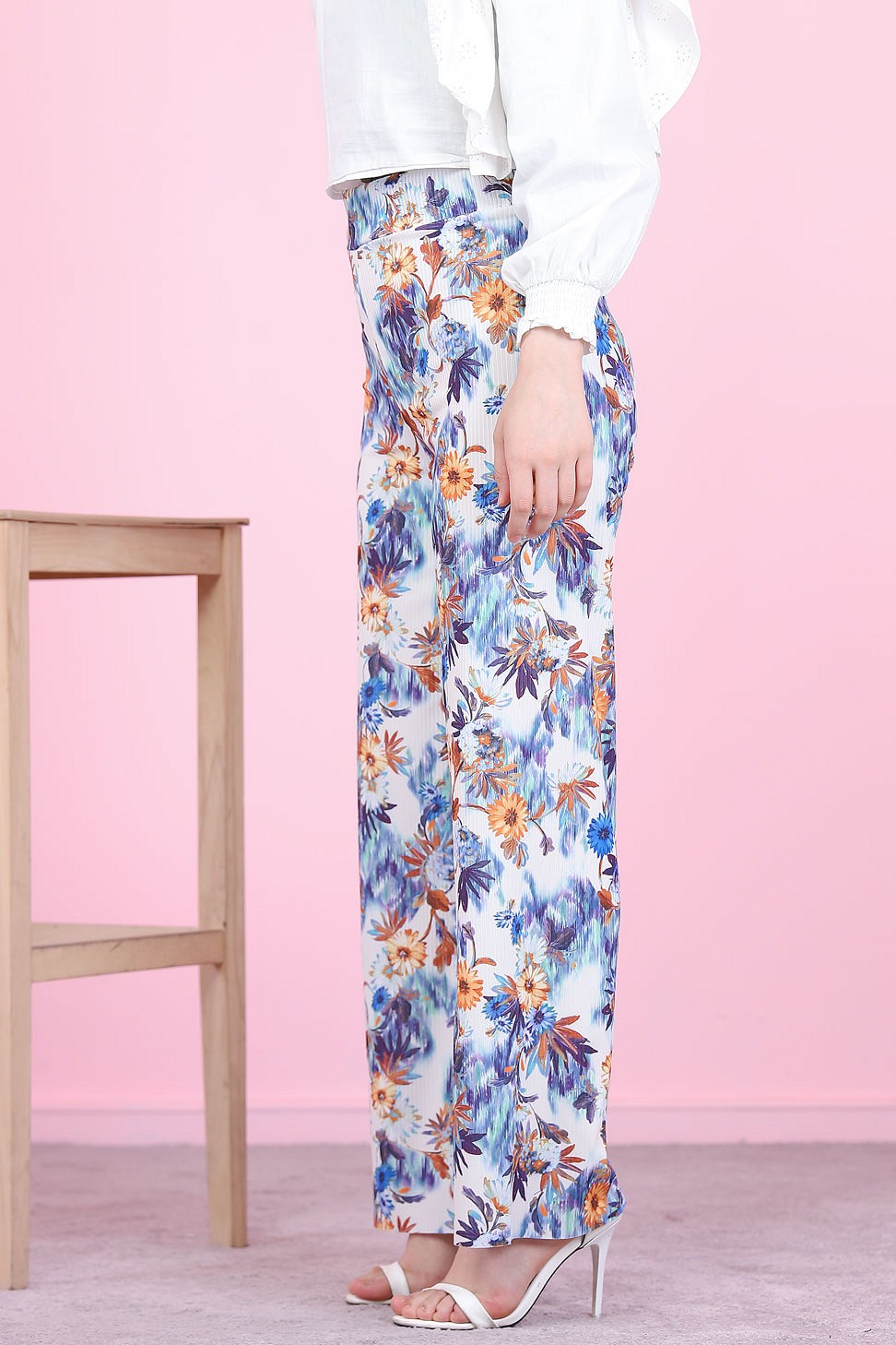 Pantalon femme imprimé à fleurs bleu Vetement & Accessoire