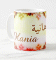 Mug avec le prénom "Jade" calligraphié en arabe (جاد) ainsi que son épellation lettre par lettre en arabe.