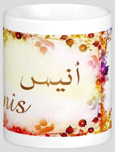 Mug avec le prénom "Anis" calligraphié en arabe (أنيس).