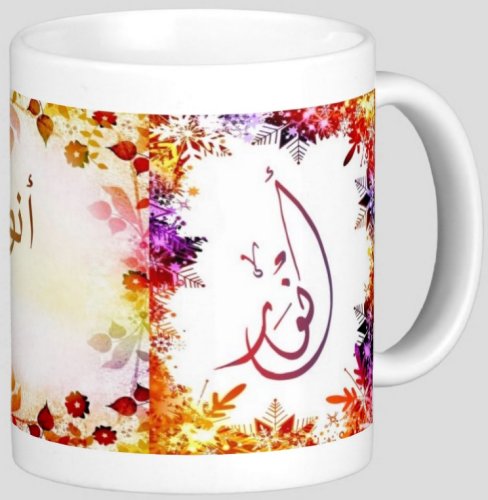 Voir l'ensemble des mugs dédiés au prénoms calligraphiés en arabe (Mugs prénoms arabes et musulmans féminins - Mugs prénoms français)