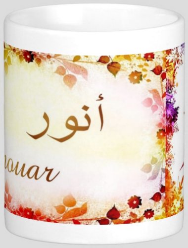 Mug avec le prénom "Anouar" calligraphié en arabe (أنور).