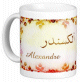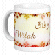Mug avec le prénom "Bariza" écrit en français, en arabe (بريزة) et calligraphié de façon artistique en arabe sur la partie droite.