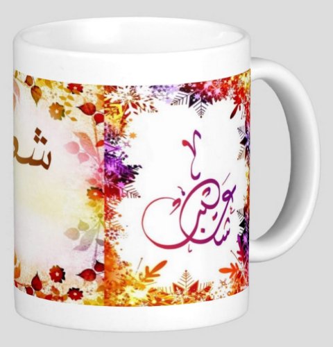 Voir l'ensemble des mugs dédiés au prénoms calligraphiés en arabe (Mugs prénoms arabes et musulmans féminins - Mugs prénoms français)