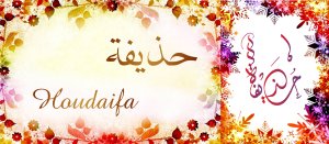 Signification (sens) du prénom Hudhayfa (Houdaifa, Hudayfa) حُذَيْفَة: Diminutif de hudhâfa(حُذَافَة), signifiant petit canard. Se dit aussi de celui qui est petit de taille. Hudhayfa Ibn Al-Yamân, noble compagnon du Prophète Muhammad.
