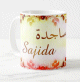 Mug avec le prénom "Ghania" écrit en français, en arabe (غنية) et calligraphié de façon artistique en arabe sur la partie droite.