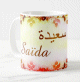 Mug avec le prénom "Ramzia" écrit en français, en arabe (رمزية) et calligraphié de façon artistique en arabe sur la partie droite.