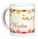 Mug avec le prénom "Noujoud" écrit en français, en arabe (نجود) et calligraphié de façon artistique en arabe sur la partie droite.