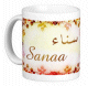 Mug avec le prénom "Souha" écrit en français, en arabe (سهى) et calligraphié de façon artistique en arabe sur la partie droite.