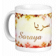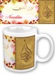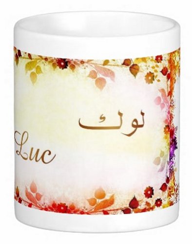 Mug avec le prénom "Luc" écrit en français, en arabe (لوك) et calligraphié de façon artistique en arabe sur la partie droite.