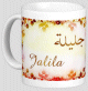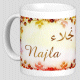 Mug avec le prénom "Luce" écrit en français, en arabe (لوس) et calligraphié de façon artistique en arabe sur la partie droite.