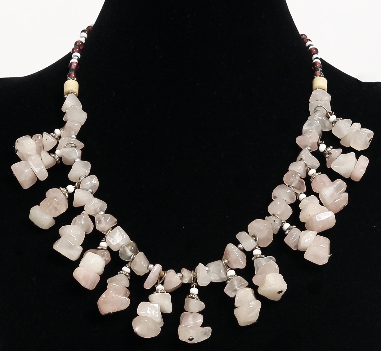 Collier ethnique artisanal imitation grosses pierres roses - REF. 18890 (22.00 €)
