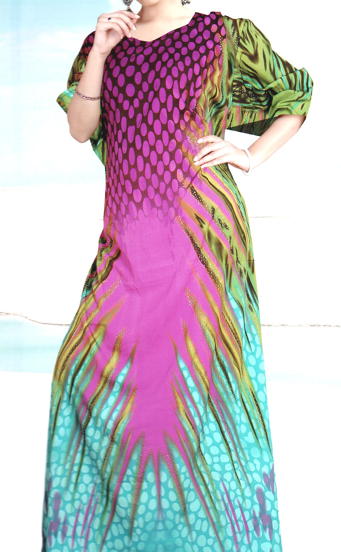 Robe orientale d'été en style de sirène avec des couleurs violet, vert, bleu vert, etc. avec paillettes...