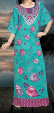 Robe orientale d'été légère à col rond à strasses, avec motifs fleuris, manches courtes assorti d'un foulard. Tissu à base de polyester léger, doux et agréable à mettre.