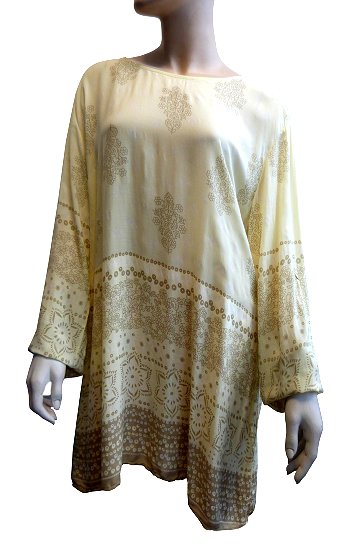 Tunique viscose a motifs pour femme - Couleur jaune pale et beige