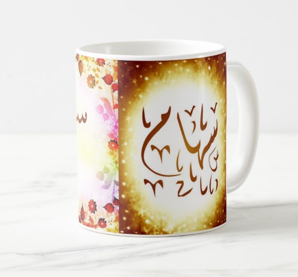 Voir l'ensemble des mugs dédiés au prénoms calligraphiés en arabe (Mugs prénoms arabes musulmans masculins - Mugs prénoms français)