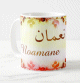 Mug avec le prénom "Marwane" écrit en français, en arabe (مروان) et calligraphié de façon artistique en arabe sur la partie droite.
