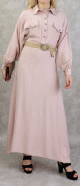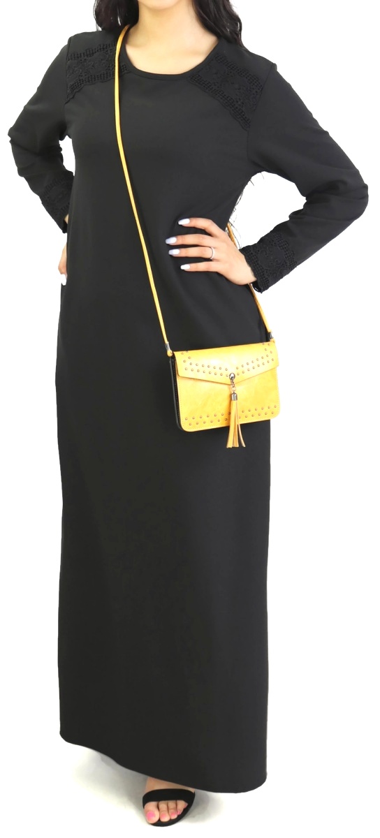 Belle robe sobre et discrète ornée de broderies sur les épaules et les poignets, col rond, poches latérales très pratiques, tissu opaque et léger.