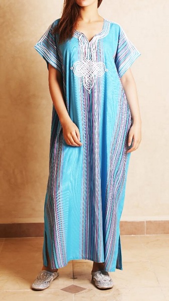 Belle gandoura traditionnelle marocaine, entièrement brodée à la main par des artisans marocains qualifiés.