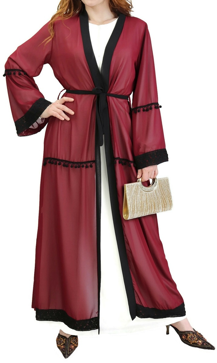 Simple et utile, il se porte ouvert ou fermé et on peut l'ajuster à la taille ou non selon les circonstances. Ses manches sont légèrement évasées, elles sont ornées de pompons qui feront sensation, alors saisissez l'occasion en vous offrant ce beau cardigan.