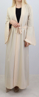 Kimono long, manches finition élastiques, lien de serrage à passants, taille décorée d'une broderie, effet plissé sur la partie du bas. Ce modèle s'adapte à toutes vos tenues et les complète à merveille.