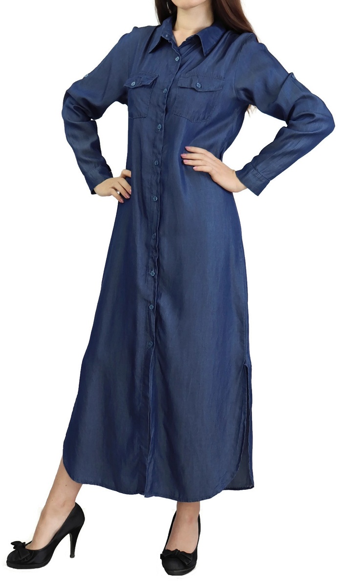 Robe chemise longue pour femme de marque Amelis Paris - Couleur jean brut Vetement & Accessoire