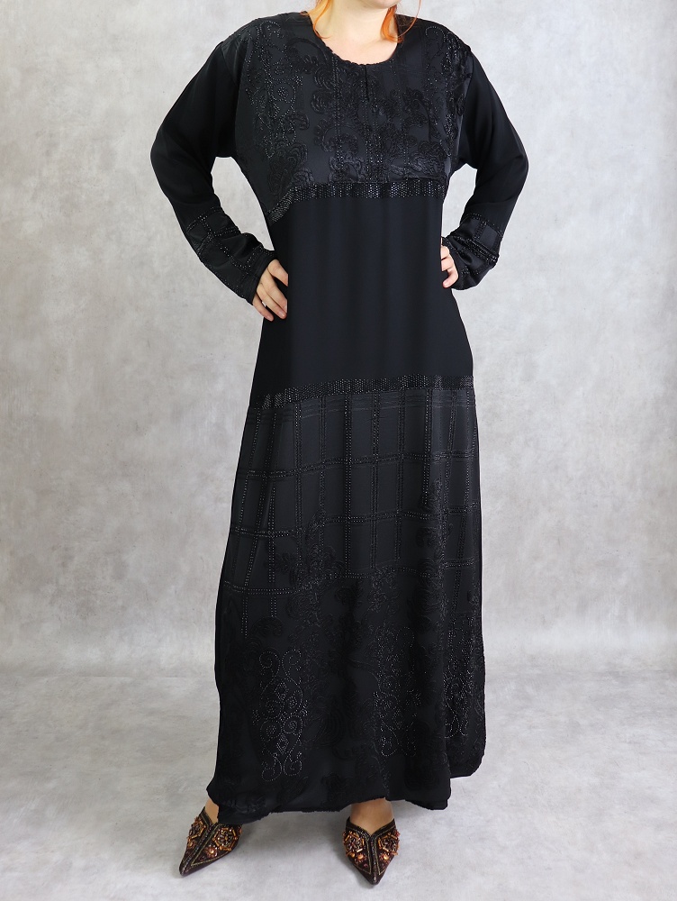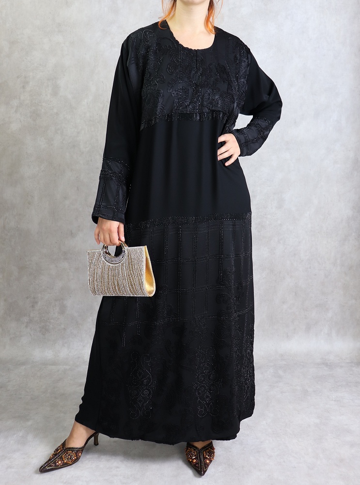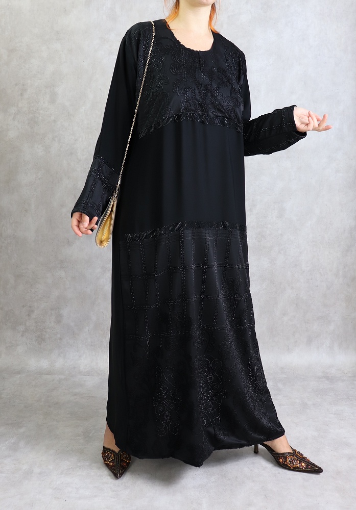 Abaya des Emirats - Robe Noire ornée de broderie et de strass - REF. 31074 (39.00 €)