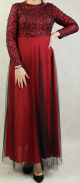 Robe longue, col rond, fermeture zippée au dos, manches longues, taille cintrée, ceinture satinée assortie. Coupe droite légèrement évasée, entièrement doublée.