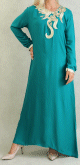 Belle robe style oriental avec broderies de qualité sur l'encolure, la longueur et finitions sur les poignets. Tenue sobre et élégante, parfaite pour occasions et événements.