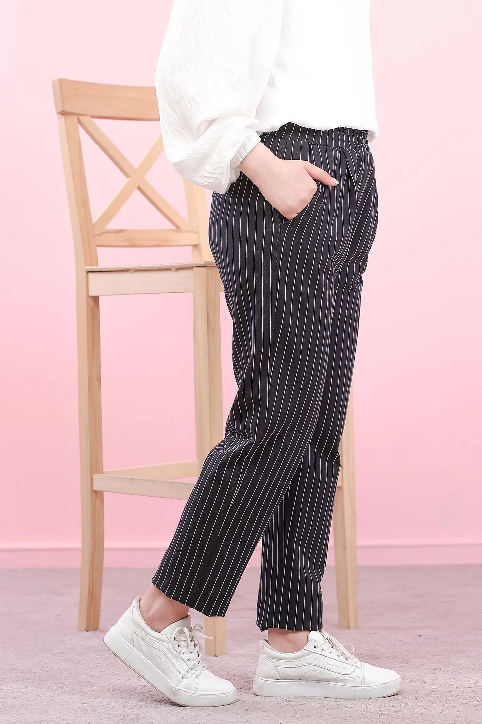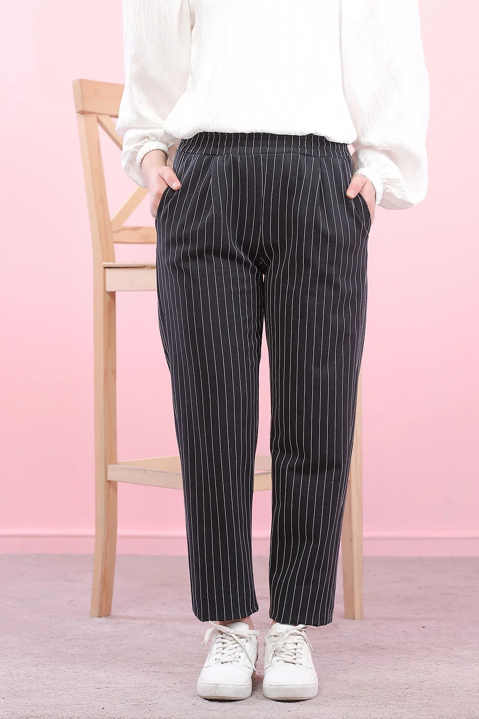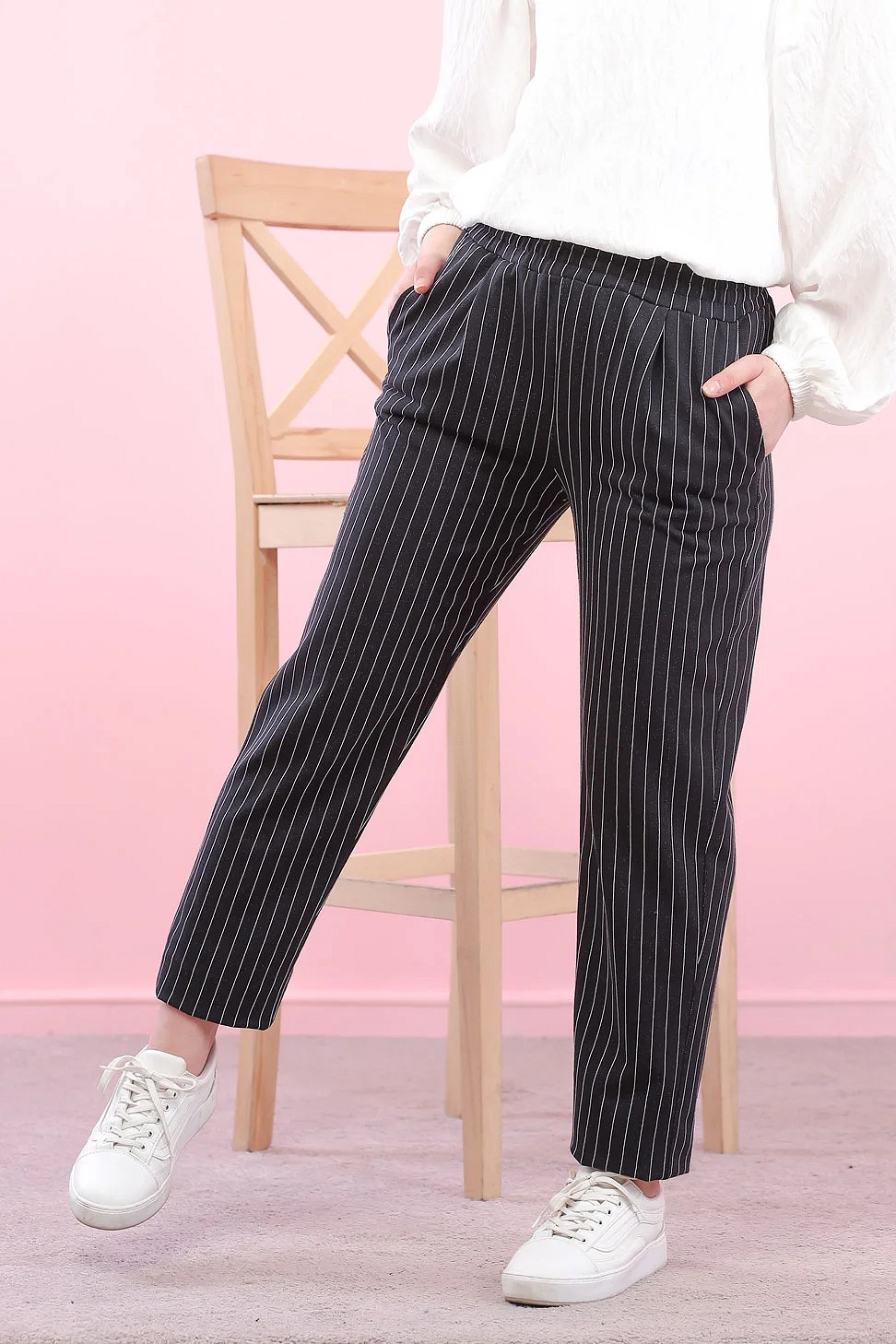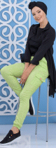 Pantalon coupe droite, taille élastique, deux poches plaquées, matière souple et agréable au toucher.