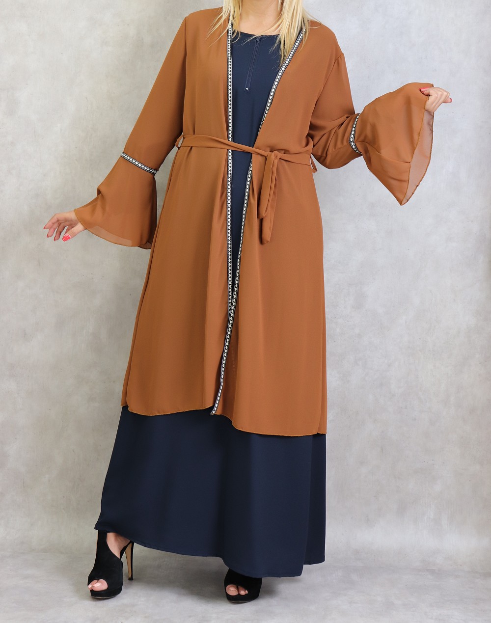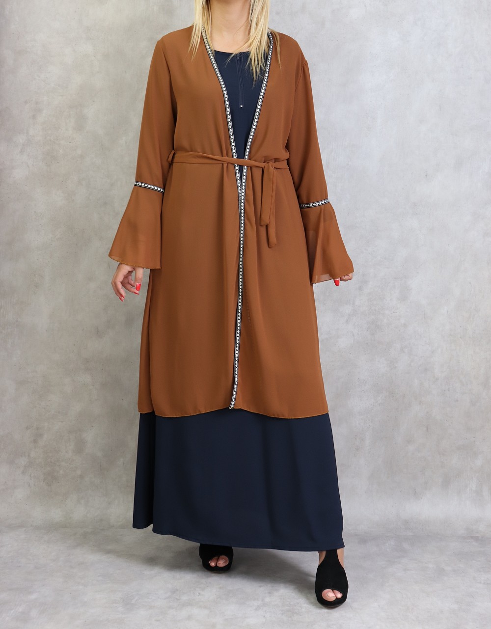 Kimono mi-long, matière fluide ultra léger, avec manches cloches, le tout accompagné d'une ceinture à nouer sous passants à la taille. Une fine broderie sur le long et les manches. Ce kimono est la pièce parfaite pour ajouter une touche chic à tous vos looks !