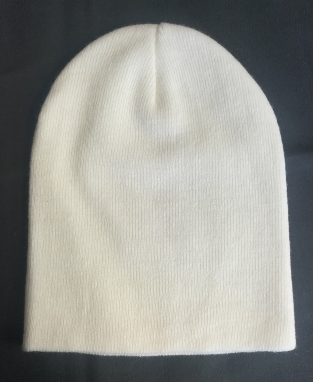 Bonnet d'hiver blanc. Taille unique avec possibilité d'adapter sa longueur grâce à sa partie rabattable.