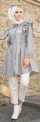 Tunique Feirouz noire ample avec un petit noeud sur le devant.