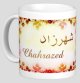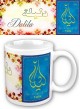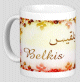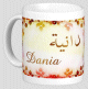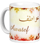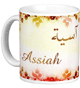 Mug avec le prénom "Amina" écrit en français, en arabe (أمينة) et calligraphié de façon artistique en arabe sur la partie droite.