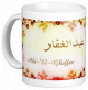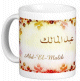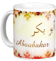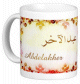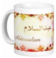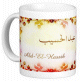 Mug avec le prénom "Khalis" écrit en français, en arabe (خالص) et calligraphié de façon artistique en arabe sur la partie droite.